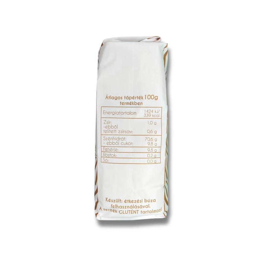 A termék GMO-mentes, 100%-ban Magyarországról származó étkezési búza felhasználásával készült, hozzáadott adalékanyagokat nem tartalmaz.